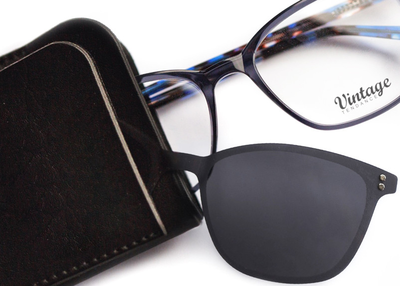Frame comes with its polarized acetate sun clip and case.